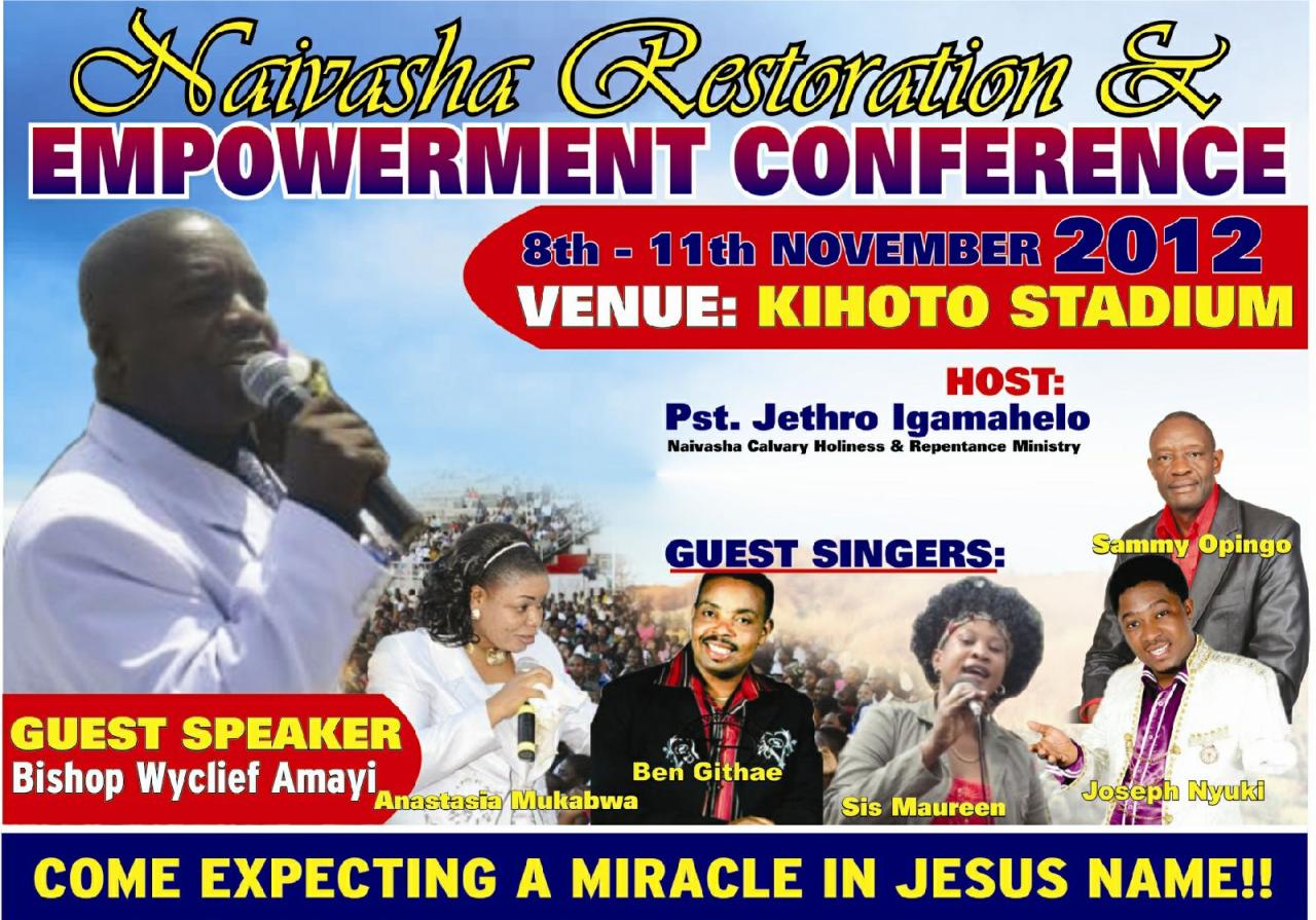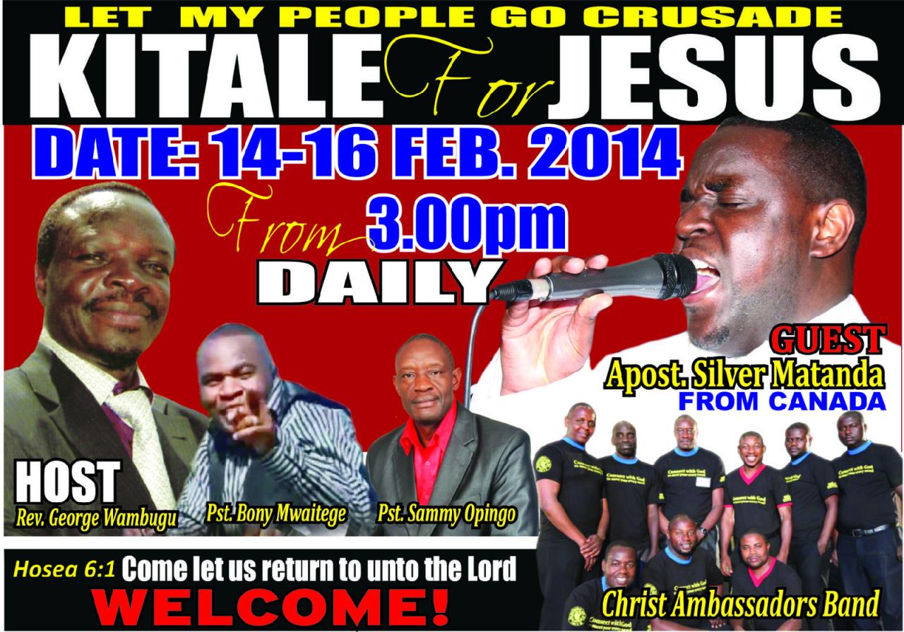 I COME FROM KENYA AFRICA, I LOVE THE LORD AND IM CALLED TO REACH AFRICA AND THE WORLD RECONCILING WITH GOD THROU' CHRIST LOVE AND MINISTRY IN ME. WE DO CRUSADES,PASTORS AND LEADERS,WOMEN, YOUTH CONFERENCES, CONCERTS AND SPECIAL MINISTRY TO ORPHANS, STREET CHILDREN AND THE NEEDY